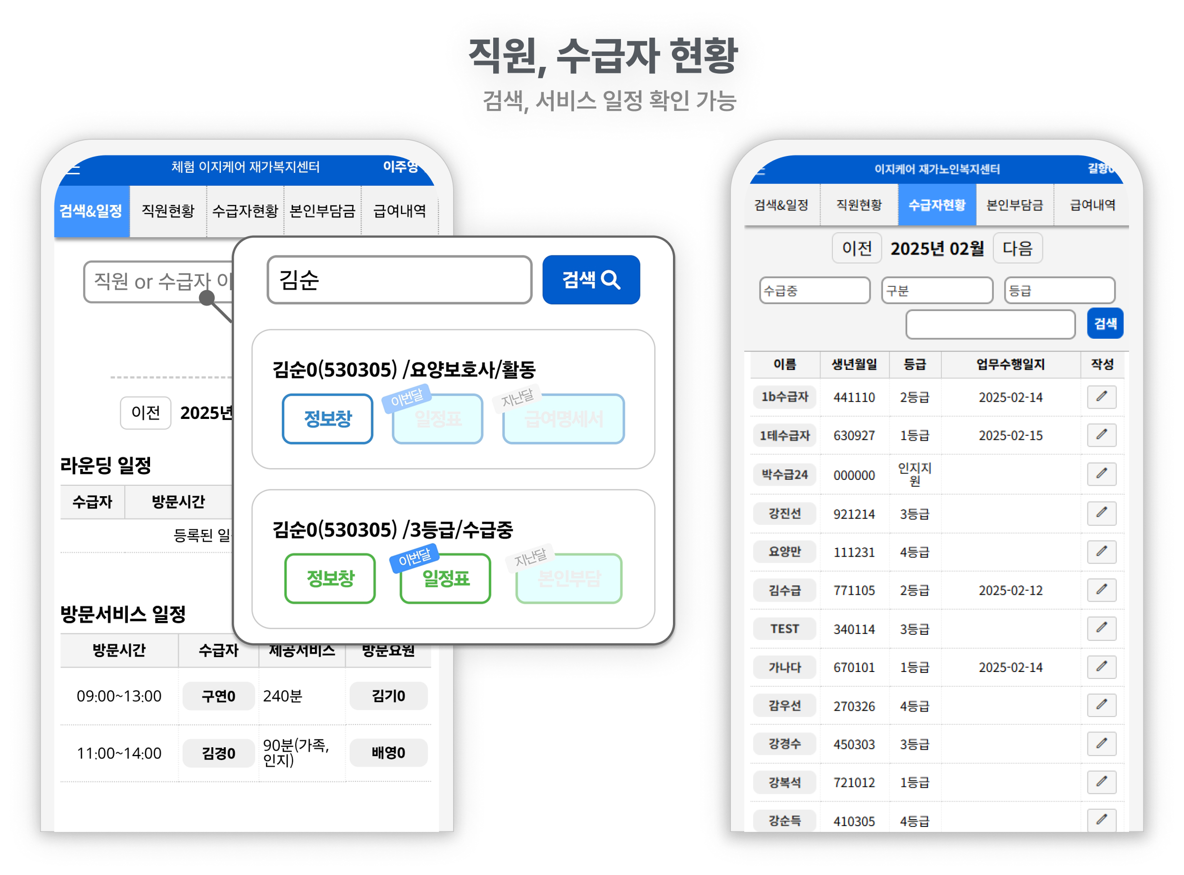 요양보호사 · 수급자 정보 조회 및 수정